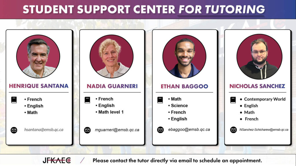 Our Academic Counsellor is available to provide information, assistance and guidance to help with educational goal, career decision-making, information regarding vocational training programs, graduation requirements and course pre-requisites for CEGEP programs.